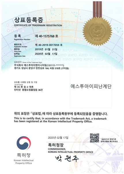 화재피난구 상표등록증 - (주)에스투아이솔루션
